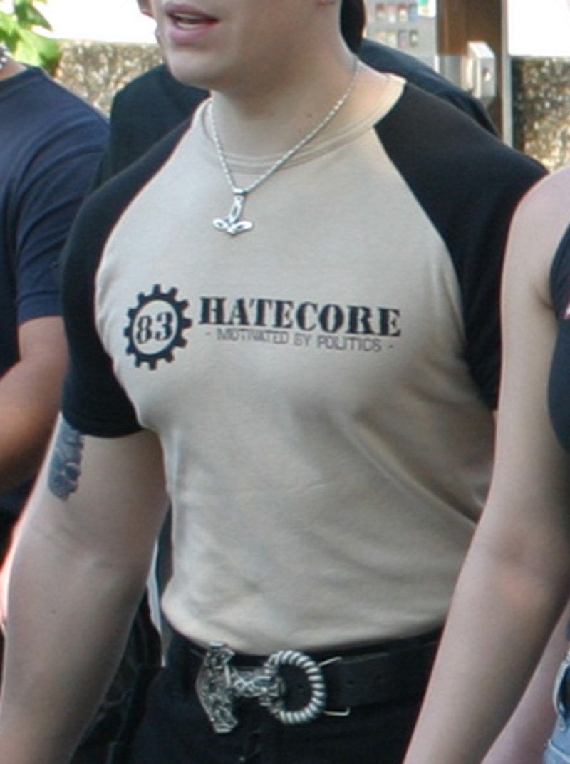 Die Person in einem Bild zeigt zwei Thorshämmer, ein Zahnrad, den Zahlencode 83 und den Spruch »Hatecore – motivated by politics«. Der Thorshammer, Symbol des Germanengottes Thor, ist kein eindeutig rechtes Symbol und wird vereinzelt sogar in »alternativen« Kreisen getragen. Das Zahnrad ist ein altes Symbol für Technik, Fortschritt und Moderne. Es war auch Teil der Symbolik der NS-Organisation Deutsche Arbeitsfront (DAF) und ist bei Neonazis beliebt, weil es zu den wenigen Symbolen zählt, die im NS breit verwendet wurden und heute straffrei gezeigt werden dürfen. Der Begriff Hatecore ist ein Synonym für NS-Hardcore-Musik, doch er kommt ursprünglich aus der linken Hardcore-Szene und wird dort noch gelegentlich verwendet. Und die 83 ist eine Code-Spielerei, sie steht hier für HC (Hatecore). Alleine stehend ist nichts eindeutig: Weder Thorshammer, noch Zahnrad, noch Hatecore.